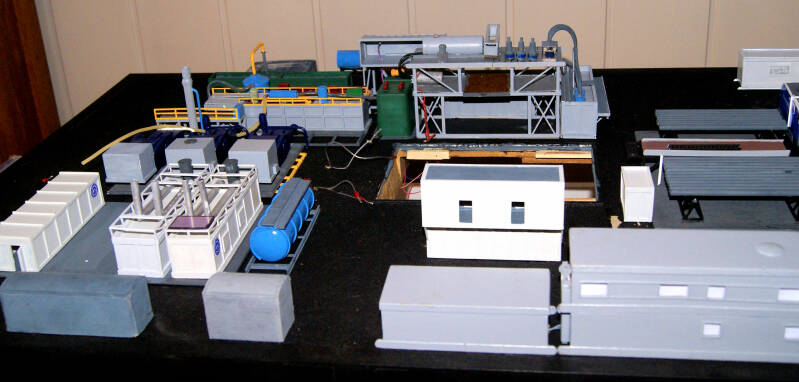 Verlichting van de lichtmasten, machines, personeelsverblijven en de toren, boven en onder aangesloten en gekoppeld naar adapter. Was toch nog heel wat soldeerwerk.