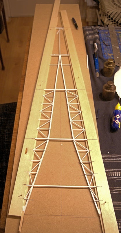Ook begonnen met het maken van de onderbouw, waarop de toren-boorvloer ligt. Gemaakt van profielen van hout en polystyreenplaat.