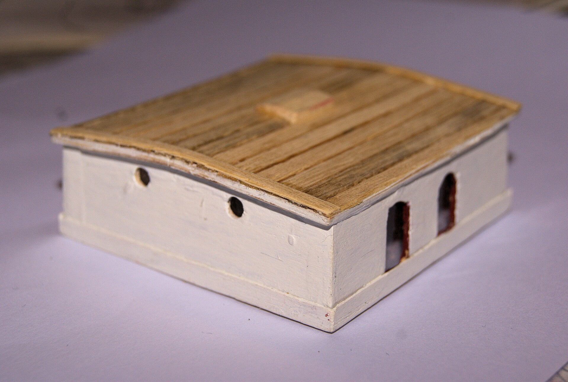 Voor verdere afwerking 1e even de verschillende onderdelen los op het schip geplaatst. Kijken waar er nog bijgescheurd moet gaan worden, zodat alles goed passend aansluit.