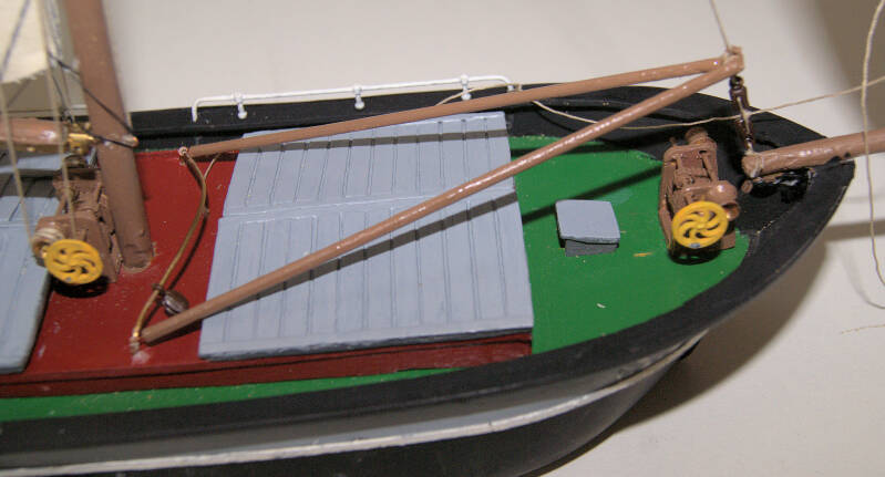 Voor verdere afwerking 1e even de verschillende onderdelen los op het schip geplaatst. Kijken waar er nog bijgescheurd moet gaan worden, zodat alles goed passend aansluit.